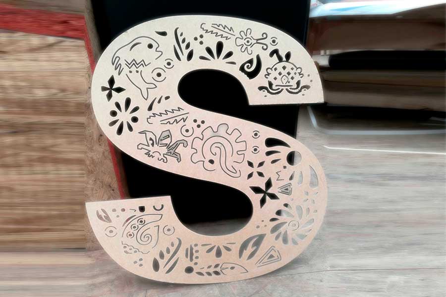Madera, MDF, Formaica, PVC, Acrílico, Plásticos, alucubond, diversos metales, ideal para corte de letras, logotipos, calados, muebles, exhibidores, señalización, reconocimientos, promocionales y un sinfín de formas y figuras de acuerdo con sus necesidades.
